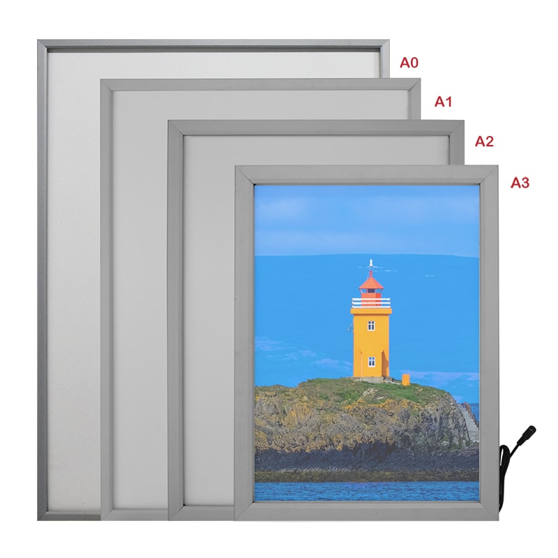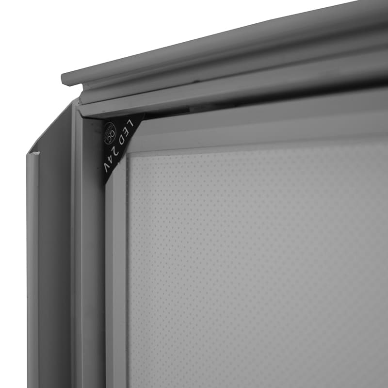 Caja de luz ideal para exponer imágenes o información en supermercados, bancos, tiendas, hoteles, y más. Es una estructura de marco con perfiles abatible, panel guía para dar uniformidad a la luz sobre el cual se coloca el gráfico en papel backlit, y se cubre con panel de acrílico frontal sostenido por los perfiles. Tiene opción de orientación vertical u horizontal.