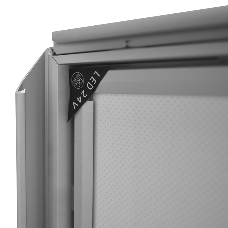 Caja de luz ideal para exponer imágenes o información en supermercados, bancos, tiendas, hoteles, y más. Es una estructura de marco con perfiles abatible, panel guía para dar uniformidad a la luz sobre el cual se coloca el gráfico en papel backlit, y se cubre con panel de acrílico frontal sostenido por los perfiles. Tiene opción de orientación vertical u horizontal.