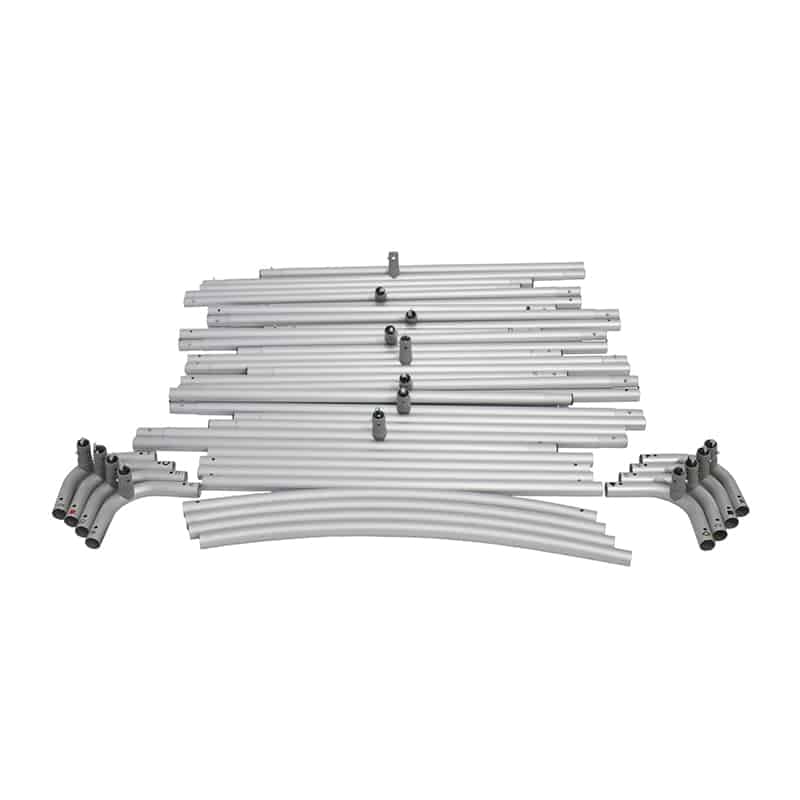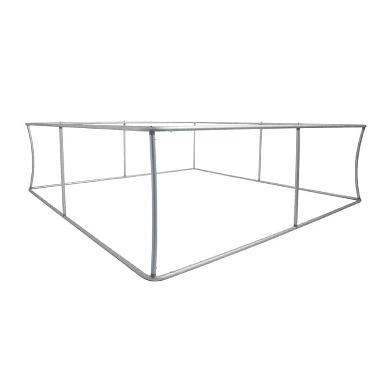 Colgante de forma cuadrada compuesta por tubos de aluminio anodizado, cuenta con arillos en la parte superior de los cuales es colgada la estructura. Este tipo de estructuras poseen una gran visibilidad de 360 grados y es altamente utilizado en exposiciones, convenciones, tiendas, fabricas, almacenes, entre otros.