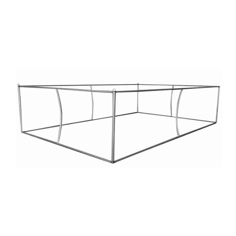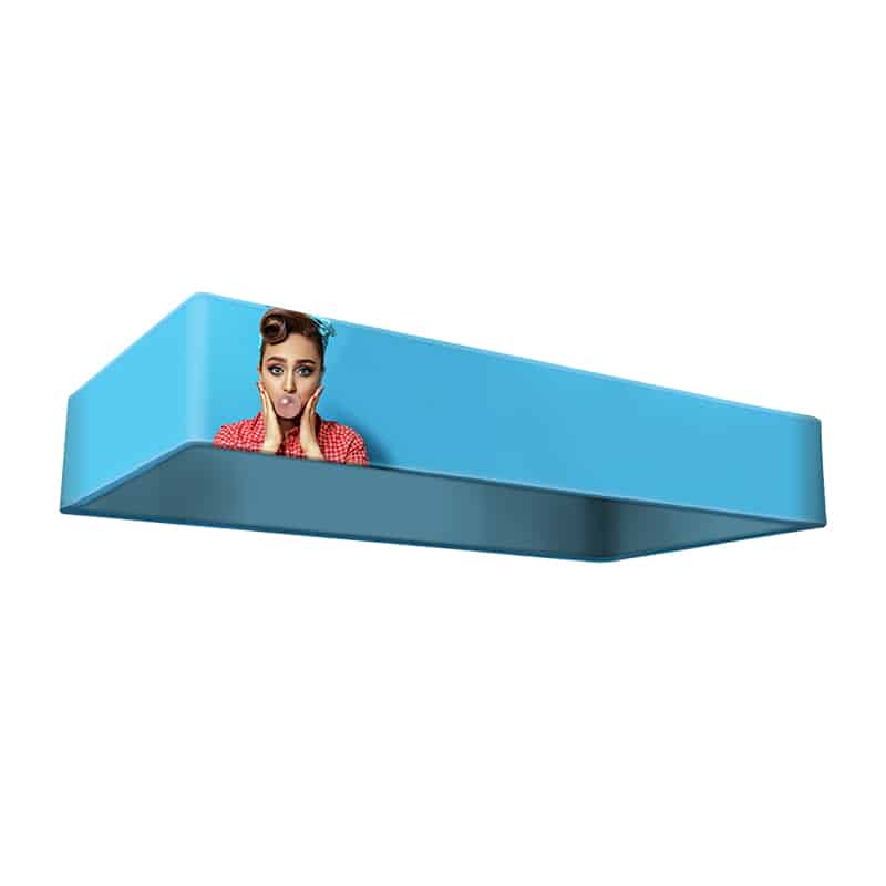 Colgante de forma rectangular estructurada por tubos de aluminio anodizado, cuenta con arillos en la parte superior de los cuales es colgada la estructura. Este tipo de estructuras poseen una gran visibilidad de 360 grados y es altamente utilizado en exposiciones, convenciones, tiendas, fabricas, almacenes, entre otros.