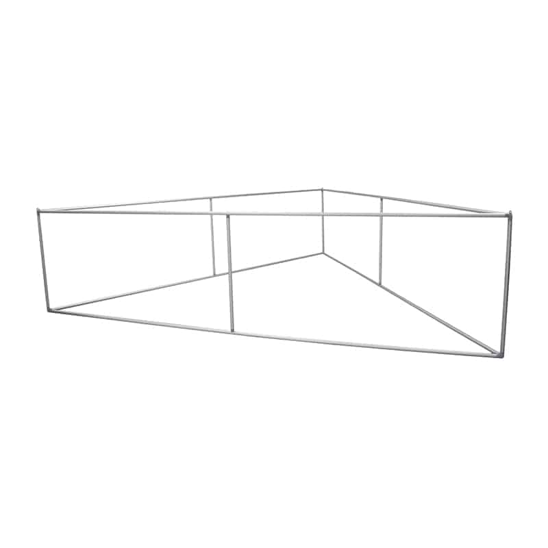 Colgante de forma triangular estructurada por tubos de aluminio anodizado, cuenta con arillos en la parte superior de los cuales es colgada la estructura. Este tipo de estructuras poseen una gran visibilidad de 3 lados y es altamente utilizado en exposiciones, convenciones, tiendas, fabricas, almacenes, entre otros.
