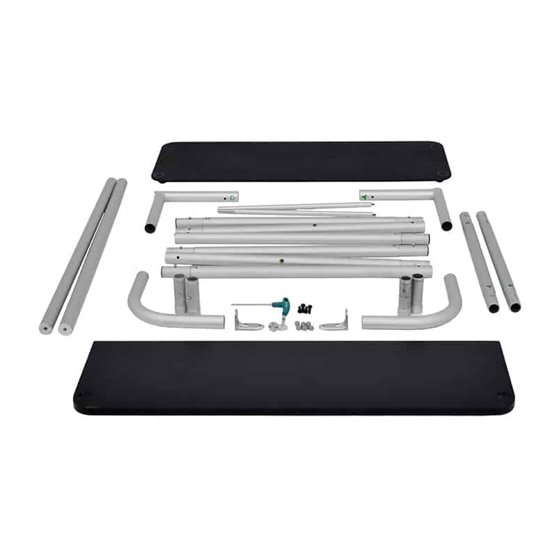 Kiosko formado por tubos circulares de aluminio anodizado los cuales son sostenidos por una base rectangular de MDF laminado, cuenta además con una repisa en el mismo material. Este display es sencillo de armar y es frecuentemente utilizado en recepciones, eventos, tiendas, entre otros.