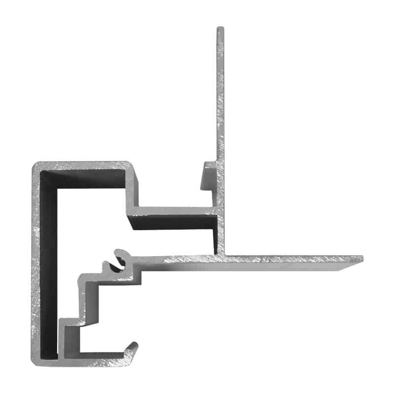 Extrusión plana HF30 de aluminio con acabado anodizado para fabricar monolitos del sistema plano. Este perfil de 30 mm se coloca en los extremos del monolito para insertar la placa de material rígido para mostrar información. El perfil cuenta con cara plana para los extremos laterales del monolito.