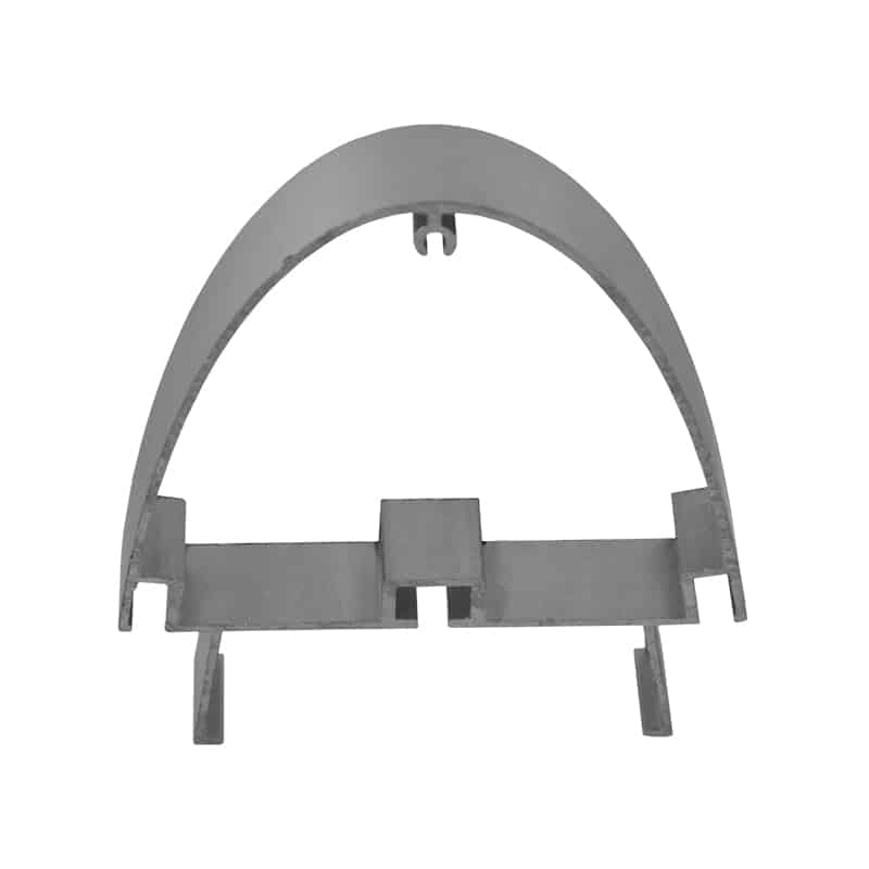 Perfil de aluminio HY100, con acabado anodizado para estructurar tótems con sistema frente curvo, se colocan en los laterales del señalamiento, permitiendo crear un sistema práctico y de alta resistencia de señalización de espacios interiores o exterior. La utilización de esta extrusión, permite integrar luz a las estructuras ensambladas.
